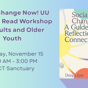 Social Change Now! UU Common Read Workshop for Adults and Older Youth Join us on 11/15 from 10am - 3pm to explore ... Saturday, Nov 15 2025 10:00 am - 3:00 pm UUCT
