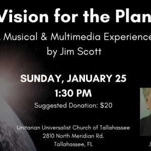 A Vision for the Planet – A Multimedia Experience by Jim Scott Mixing powerful songs and striking projected images, “A Vision for ... Sunday, Jan 25 2026 1:30 pm - 3:30 pm UUCT