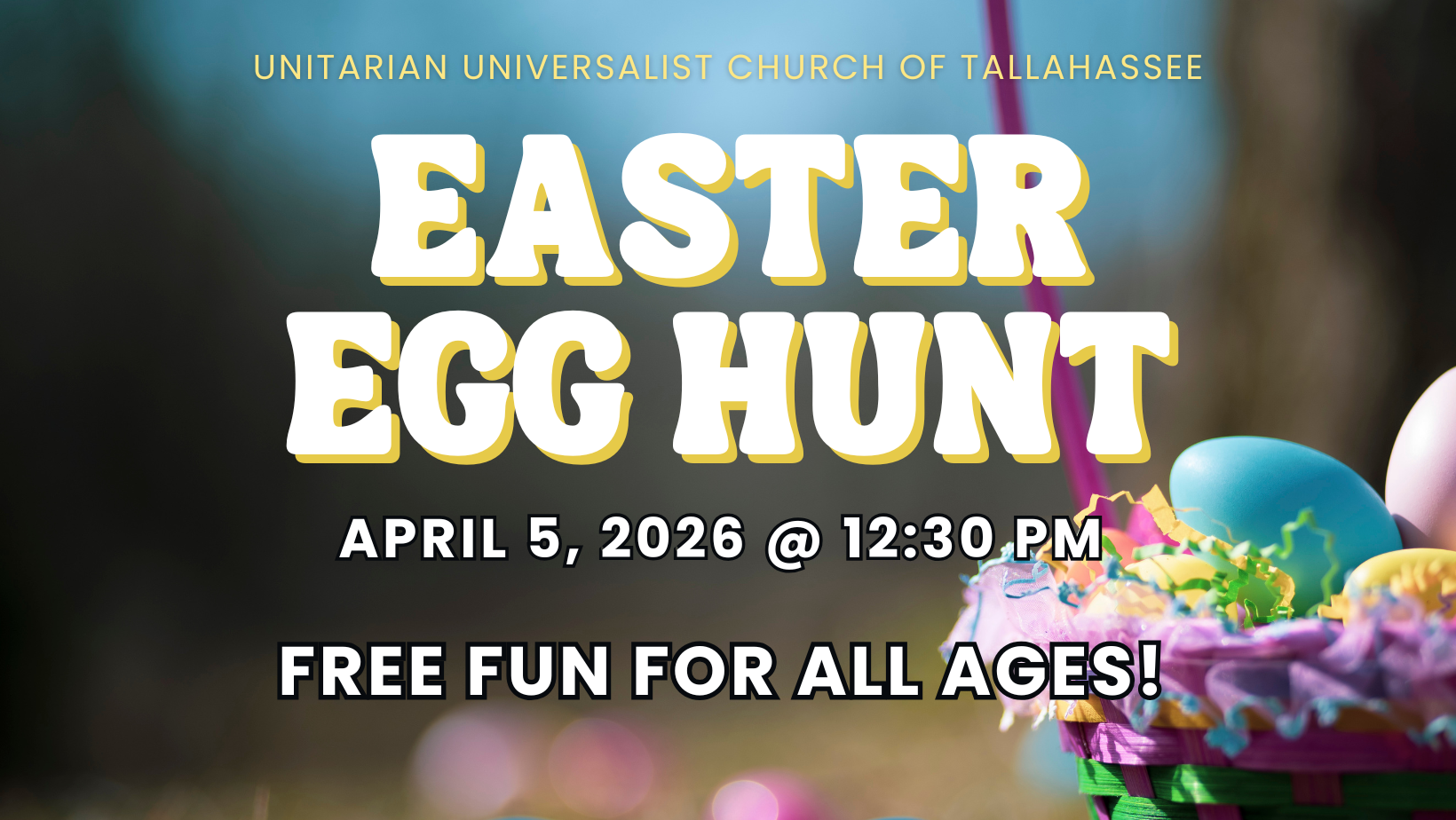 Kids are invited to join RE at UUCT as we hunt for eggs around our campus after service (12:30 – 1:00pm) on Sunday, 4/5! Eggs will be traded in for treats.